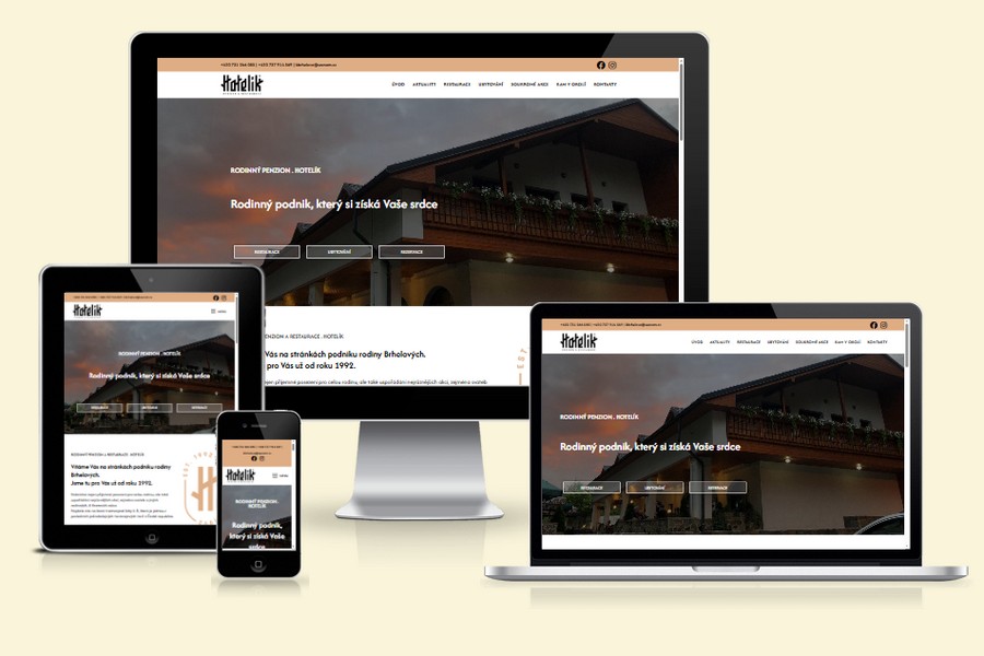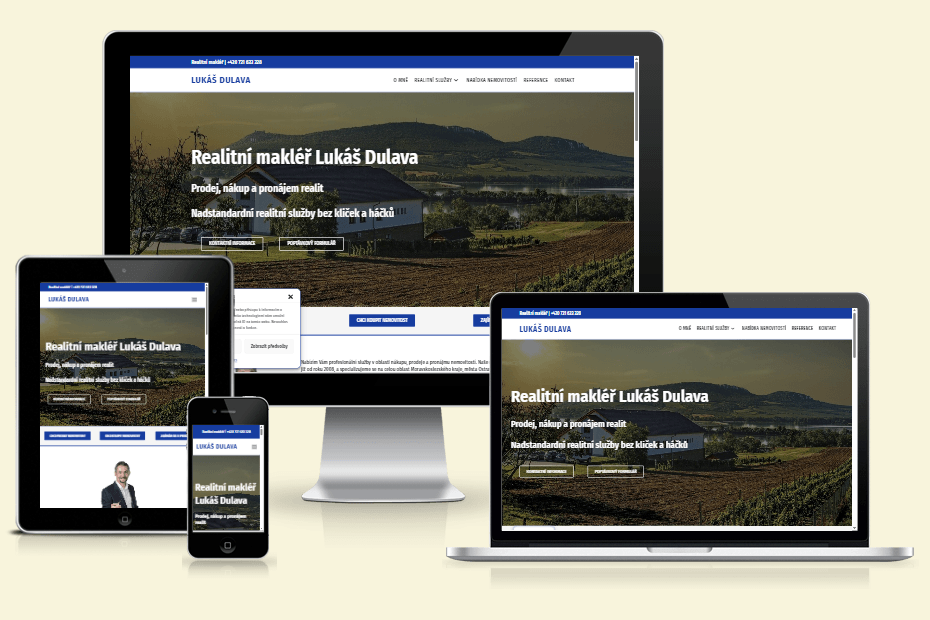 Web bude perfektně fungovat na počítači, tabletu i mobilním telefonu. Stránky jsou přehledné, rychlé a přizpůsobené moderním zařízením.